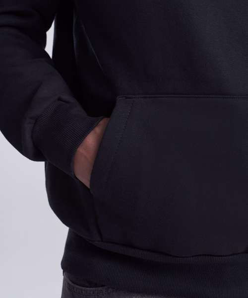 Oversized fit. Heavyweight. Three-panel, double-fabric hood. Kangaroo pouch pocket with inner phone pocket. No drawcords. Ribbed cuff and hem. Brushed inner fleece. Tear-away label. 100% cotton-faced hood.